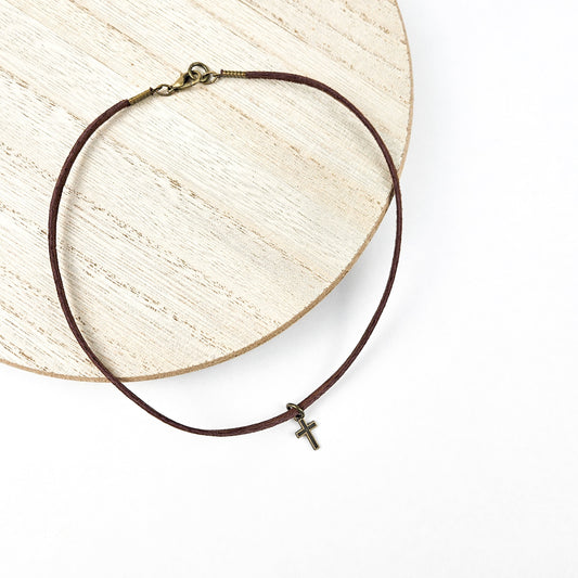 Child's Cross + Leather Essential Oil Diffuser Necklace