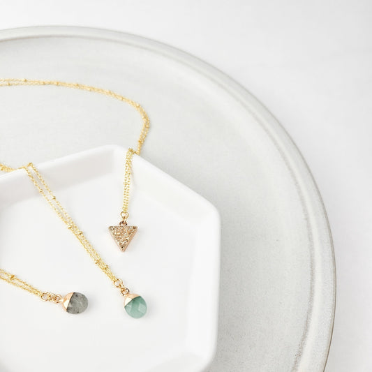 Dainty Champagne Druzy Quartz Triangle Necklace