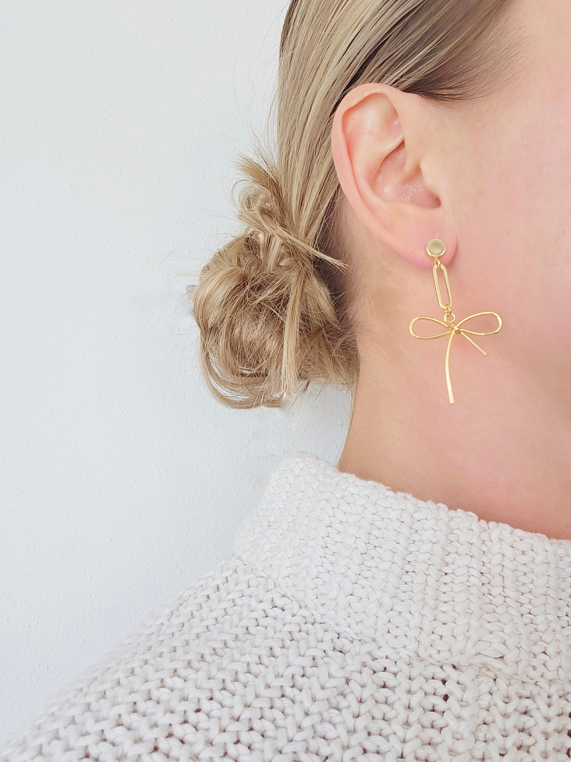 Gold Bow Statement Earrings